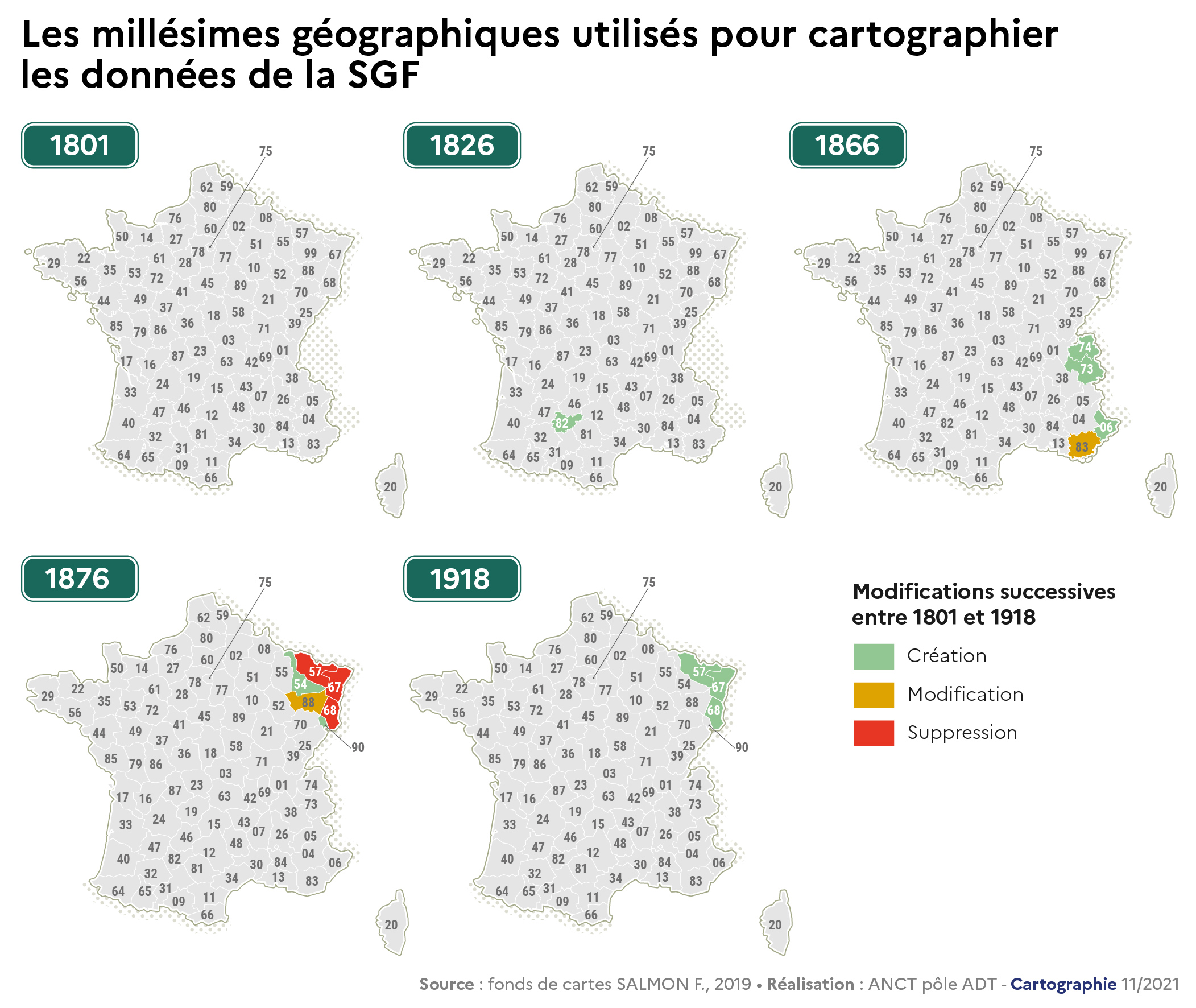 Plusieurs millésimes géographiques sont ainsi proposés : 1801, 1826, 1866, 1876 et 19184.